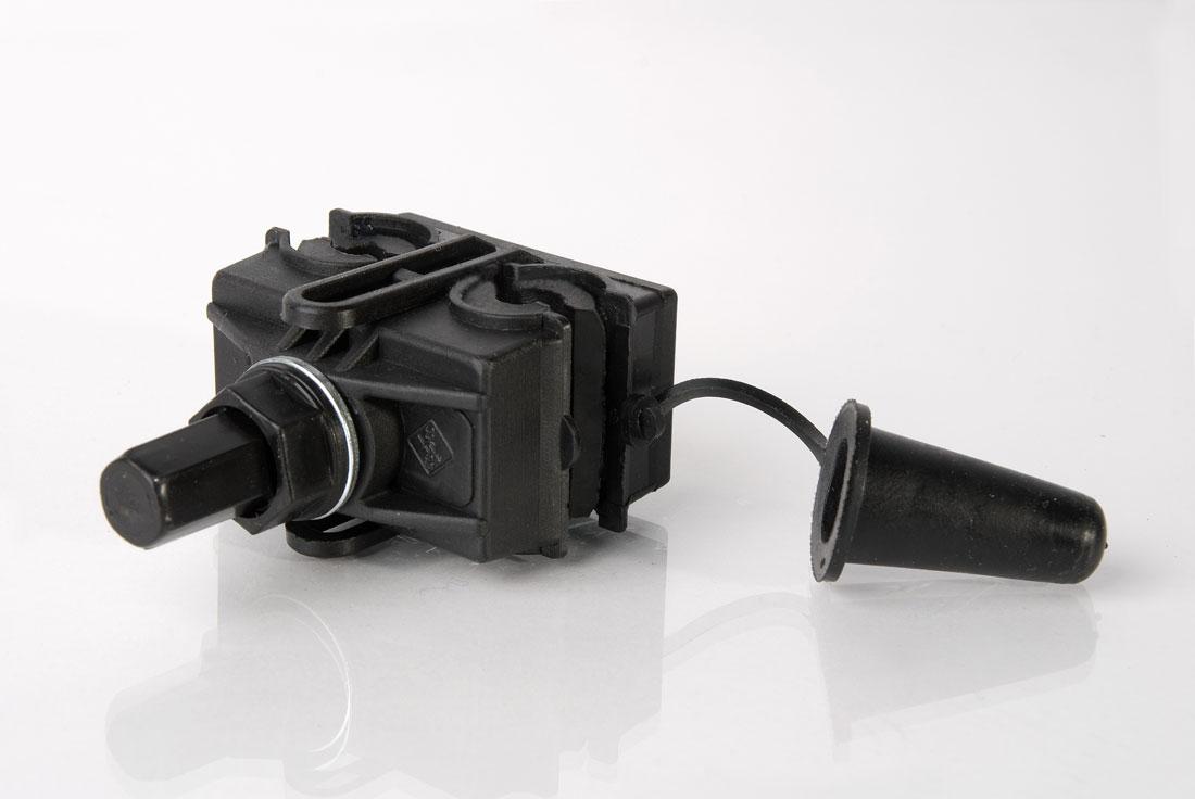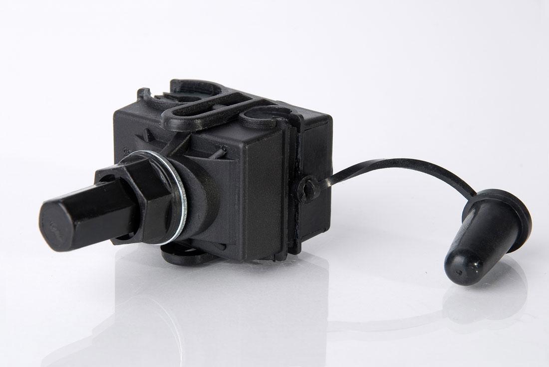 При затягивании болта со срывной головкой зубцы контактных пластин прорезают изоляцию и входят в зацепление с проводником, образуя надежное соединение с минимальным переходным сопротивлением.