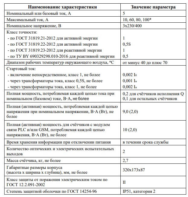 Соответствует ГОСТ 31818.11-2012. Соответствует ГОСТ 31819.21-2012. Соответствует ГОСТ 31819.22-2012. Соответствует ГОСТ 31819.23-2012. Сертифицирован и внесен в Государственный реестр средств измерений РБ под номером РБ 03 13 6052 16.ОСОБЕННОСТИ ЭЛЕКТРОСЧЕТЧИКА