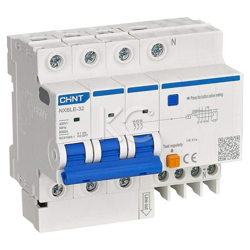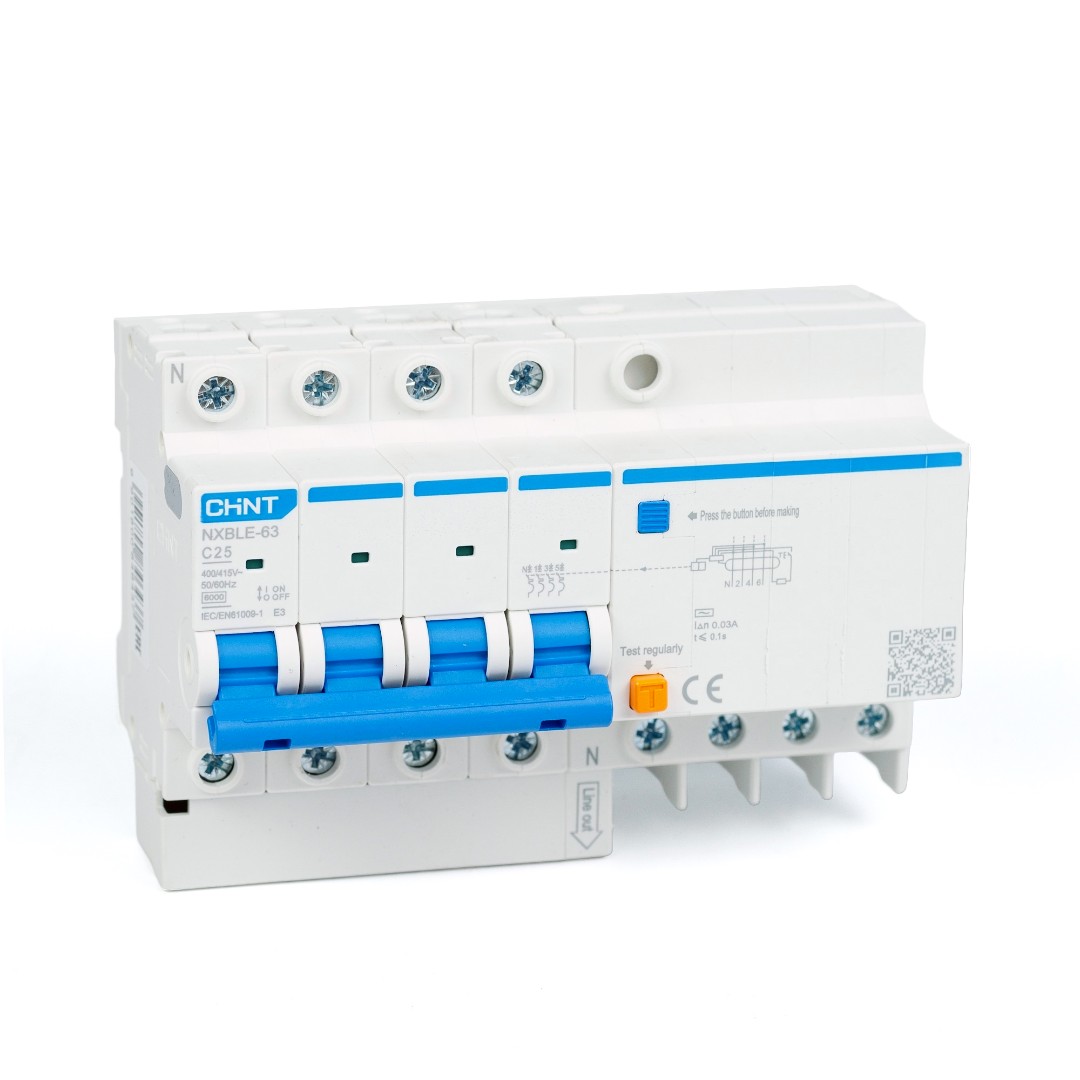 Диф. автомат NXBLE-63 4P 25А 30mA (6kA) CHINT (занимает 8 модулей)