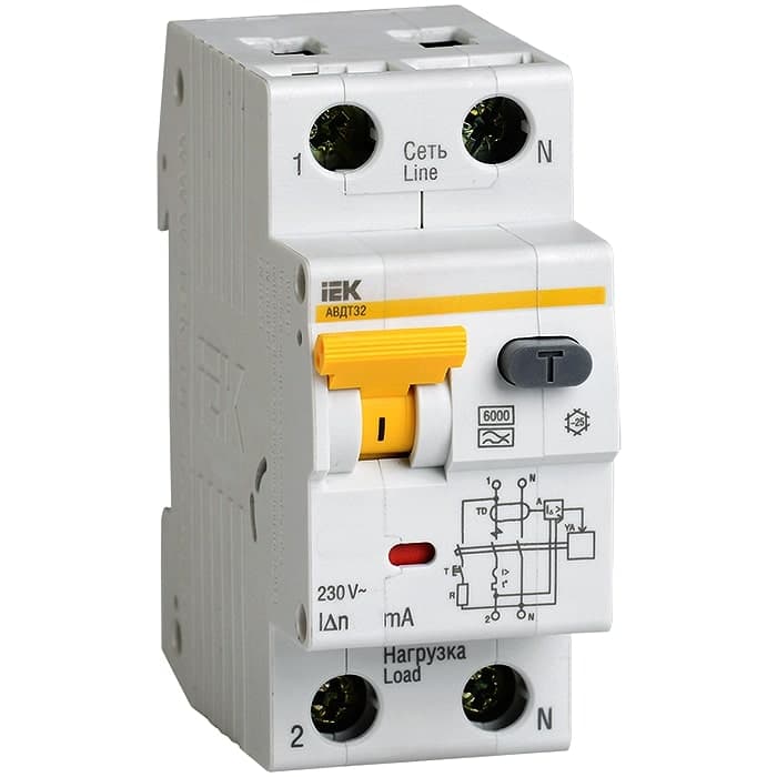 Диф АВДТ32 C 6А 30мА 2 модуля IEK