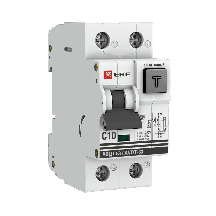 АВДТ-63 10А/30мА хар-ка C электронный тип A 6кА EKF PROxima